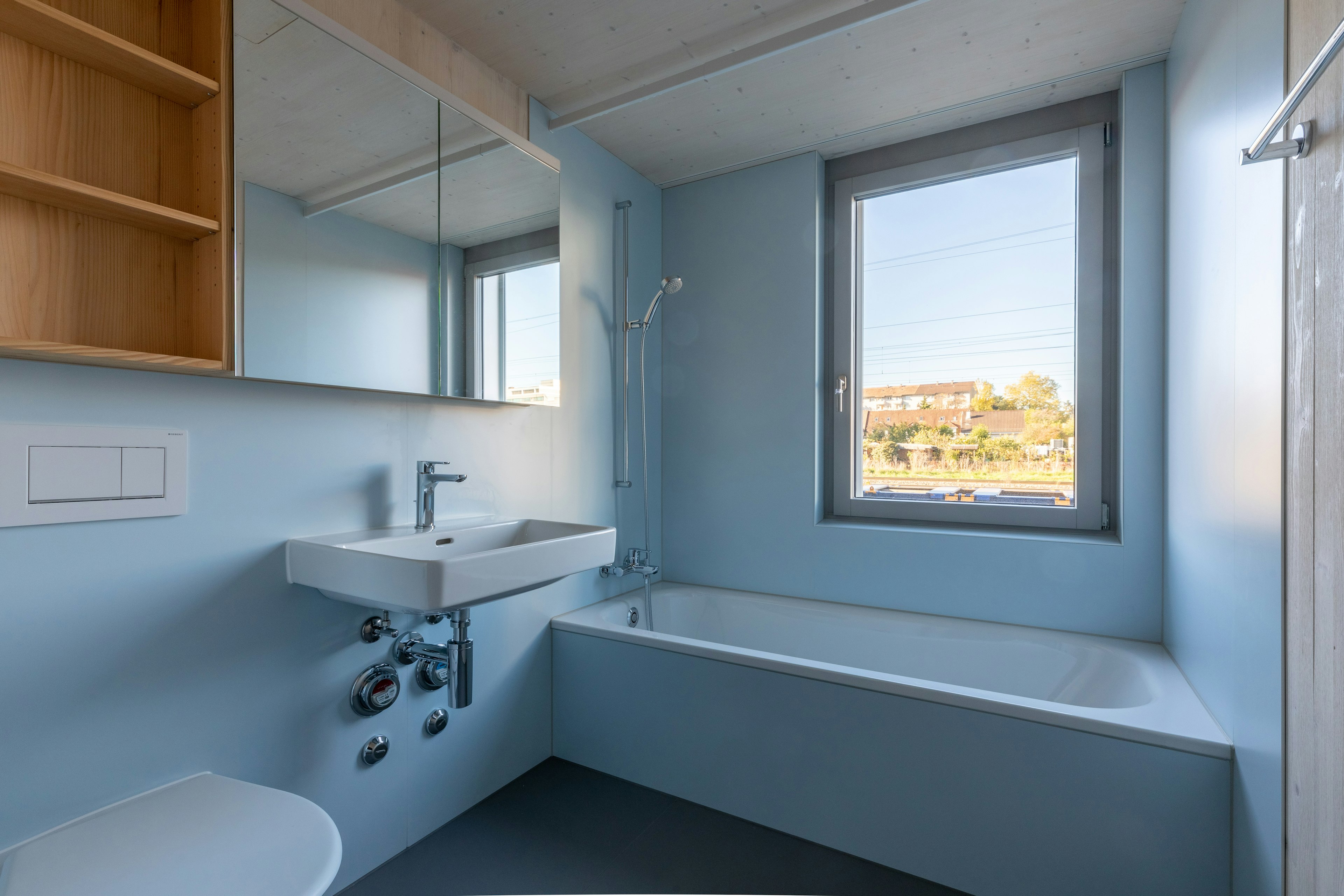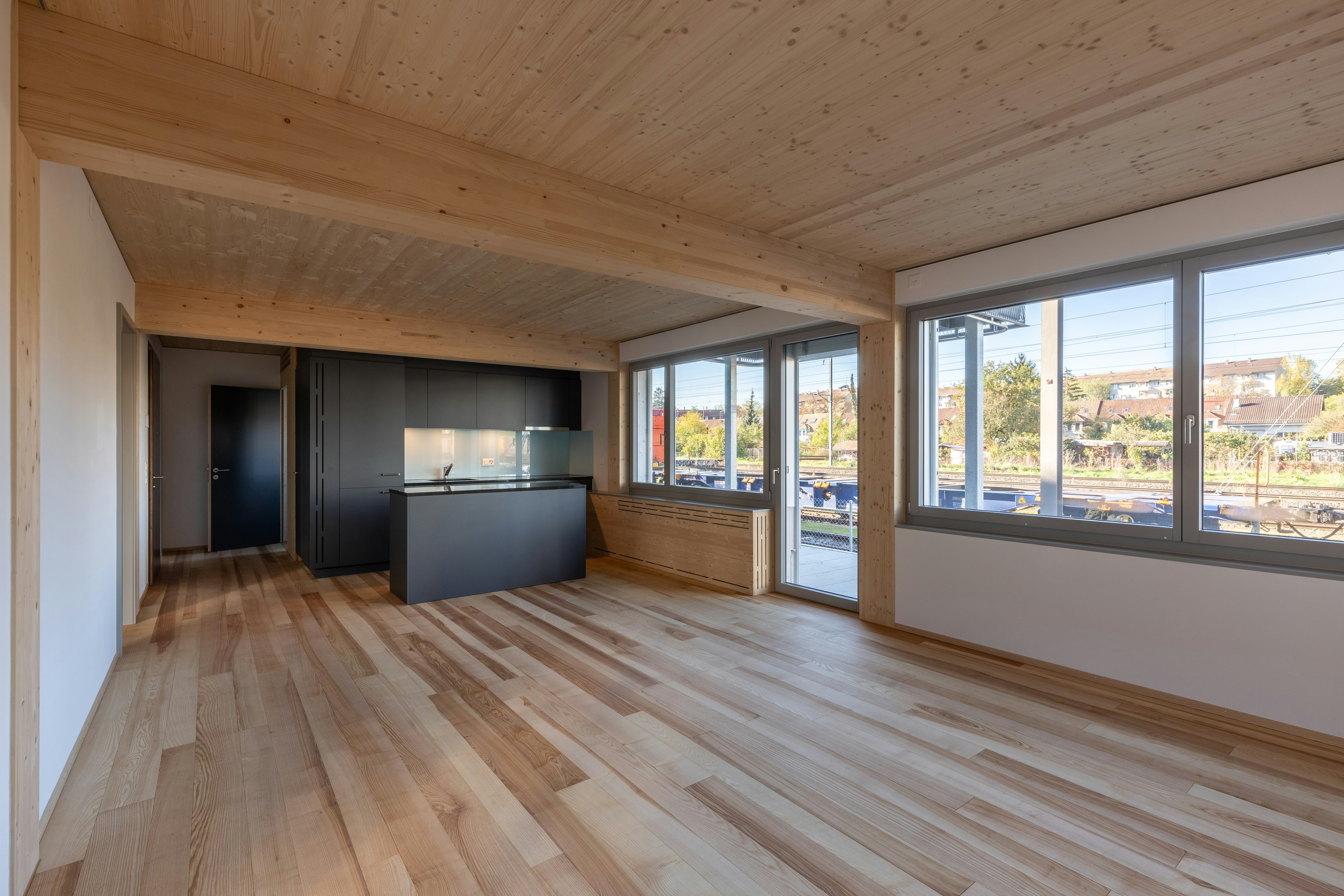 Pour le projet bâlois de CFF Immobilier réalisé à proximité immédiate de la gare St. Johann, qui propose 69 appartements locatifs compacts, mais de haute qualité, de 1½ à 3½ pièces, et deux unités d’atelier-logement au rez-de-chaussée, Samuel Pillichody affirme que c’est la discipline et la rigueur mises dans la conception de l’immeuble qui ont permis de relever le défi d’une construction à des coûts relativement avantageux : « Dans notre cas, il s’agit d’un groupe de quatre immeubles. À cela s’ajoutent des dispositions de logements qui permettent un facteur de répétition très élevé. » Toutes les gaines sont combinées pour deux appartements et le nombre est minimisé à l’optimum. Grâce à la standardisation choisie, la planification et la préfabrication se sont avérées particulièrement efficaces. Les systèmes de parois et de planchers sont arrivés sur le site avec un degré de préfabrication maximal. Toutes les pièces humides ont été pré-assemblées clés en main en atelier, si bien qu’il a suffi, une fois sur site, de les connecter aux lignes d’alimentation verticales. Les appartements ont une proportion élevée de fenêtres, avec un facteur de répétition élevé. « Pour qu’un projet aboutisse, y compris en termes de coûts, nous avons absolument besoin d’un processus de conception qui soit adapté à la construction en bois », explique Samuel Pillichody. Cela aurait été possible dans le cadre du concours de performance globale : « Nous avons interrogé au total dix entreprises de construction en bois offrant des services d’entreprise totale. Nous avons agréé quatre d’entre elles pour une procédure de préqualification en vue du concours de performance globale, qui a été remportée par Schaerholzbau et Baumann Roserens Architekten. » Le président du jury était par ailleurs un ingénieur du bois. Il s’agit donc essentiellement d’intégrer très tôt les connaissances de la construction en bois.